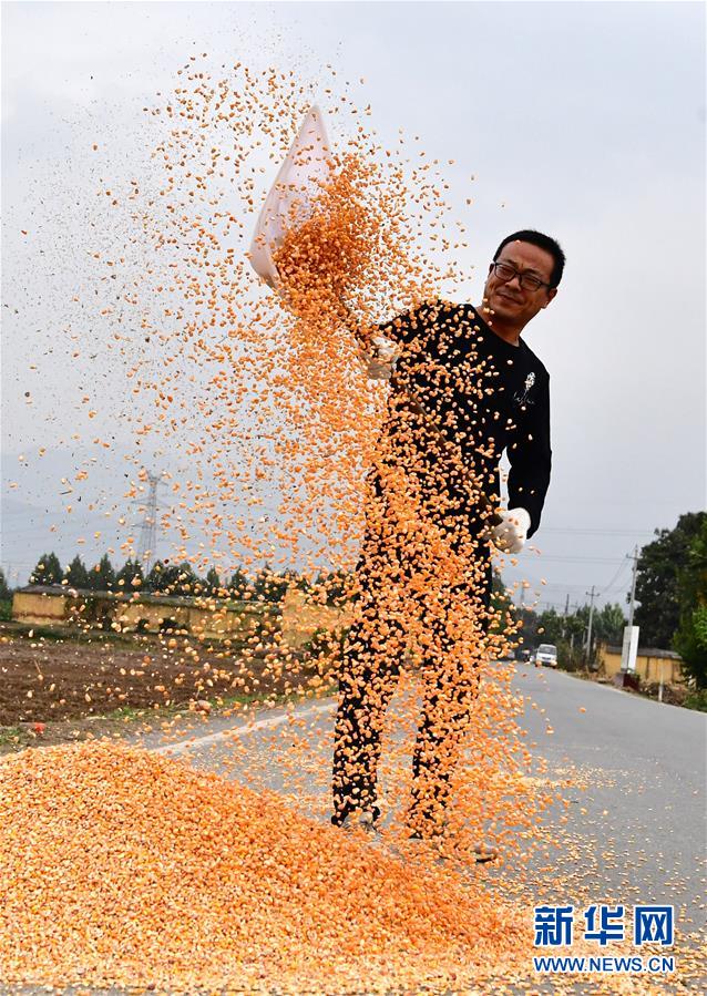 產(chǎn)糧大省的別樣秋色在河南省鞏義市西村鎮(zhèn)滹沱村,村民在晾曬玉米(10月24日攝)。新華社記者馮大鵬攝