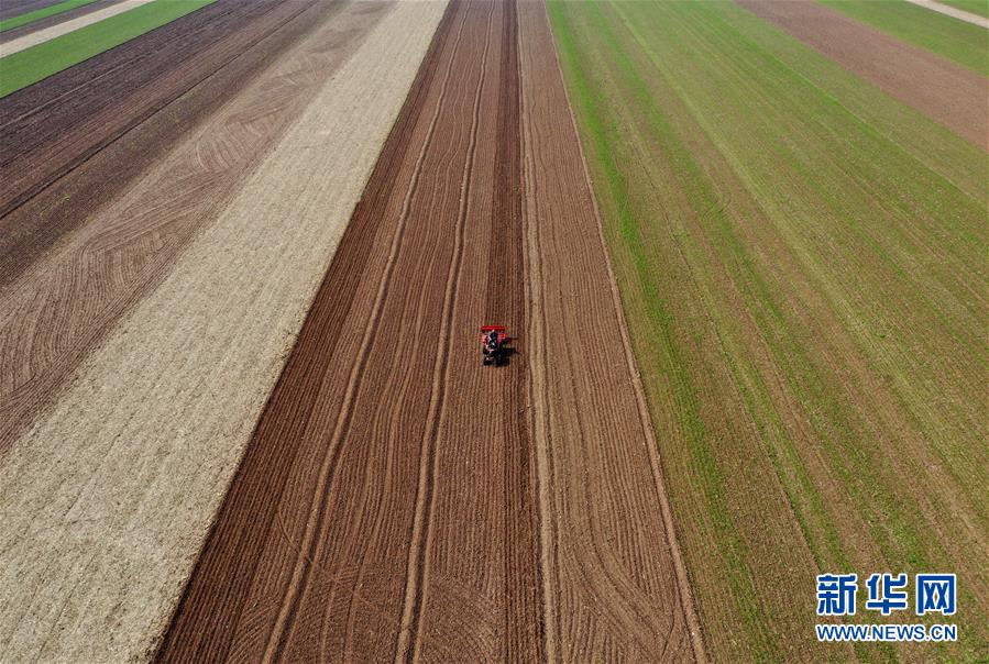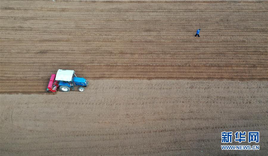 河南省寶豐縣趙莊鎮(zhèn)周營村農(nóng)民駕駛機(jī)械在農(nóng)田里犁地(10月17日無人機(jī)拍攝)。