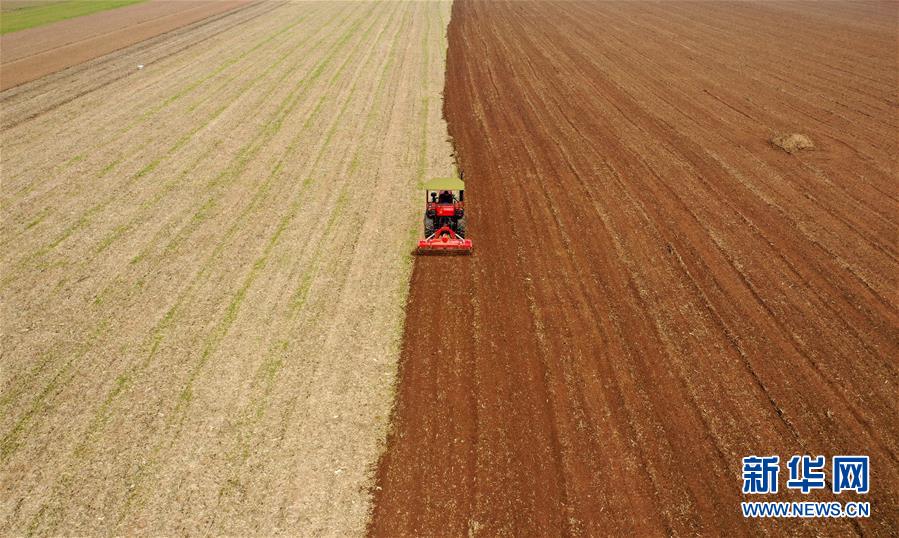 河南省寶豐縣趙莊鎮(zhèn)周營村農(nóng)民駕駛機(jī)械在農(nóng)田里犁地(10月17日攝)。新華社記者李嘉南攝