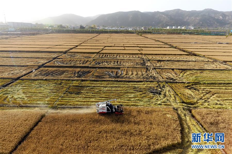 金秋時節(jié),山西省太原市晉源區(qū)2000多畝水稻迎來收獲季,田間地頭稻浪滾滾,一派豐收景象。