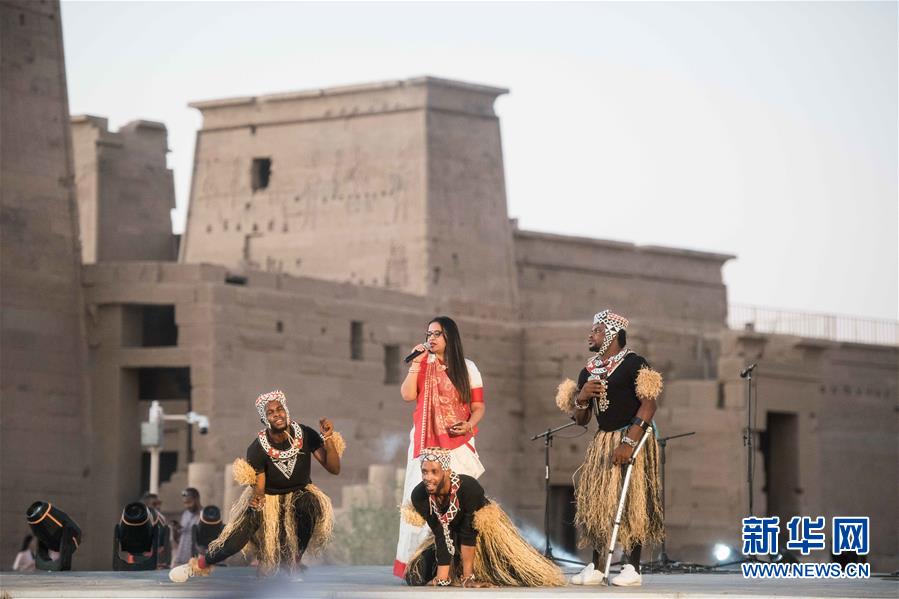 10月27日,演員在位于埃及阿斯旺的菲萊神廟表演。 第四屆中非藝術節(jié)27日在埃及南部歷史文化名城阿斯旺開幕。來自中國、埃及、尼日利亞、烏干達、突尼斯等約30個國家的藝術團在開幕式上奉獻了各具特色的表演,吸引數(shù)百名當?shù)赜^眾前往欣賞。 新華社記者 鄔惠我 攝