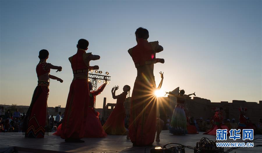 10月27日,來自福建省廈門市的小白鷺民間舞團的演員在位于埃及阿斯旺的菲萊神廟表演。 新華社記者 鄔惠我 攝