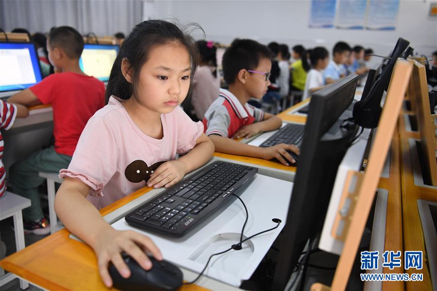9月3日,金寨縣希望小學(xué)南校區(qū)學(xué)生在上計(jì)算機(jī)課。新華社記者張端攝