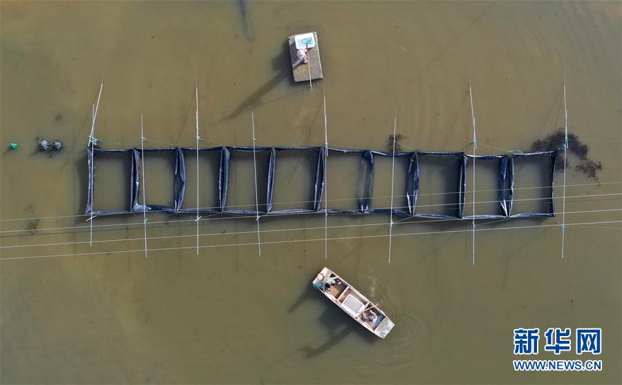 江西省南昌市新建區(qū)象山鎮(zhèn)河林村的農(nóng)戶正在大閘蟹養(yǎng)殖基地進(jìn)行捕撈(10月29日無人機(jī)拍攝)。 時(shí)下正值大閘蟹收獲的季節(jié),江西省南昌市新建區(qū)象山鎮(zhèn)河林村的村民忙著進(jìn)行大閘蟹的捕撈、包裝和外銷工作。近年來,當(dāng)?shù)匾劳休爡^(qū)內(nèi)河道縱橫、水田眾多的資源優(yōu)勢,支持鼓勵(lì)當(dāng)?shù)剞r(nóng)村引進(jìn)發(fā)展大閘蟹養(yǎng)殖業(yè),目前已有大閘蟹特色養(yǎng)殖基地300余畝,年產(chǎn)值超過200萬元,為當(dāng)?shù)剞r(nóng)戶開辟一條特色養(yǎng)殖的致富路。 新華社記者 彭昭之 攝