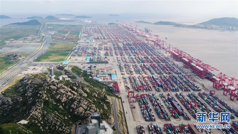 上海洋山深水港(10月16日無人機拍攝)。 新華社記者 丁汀 攝