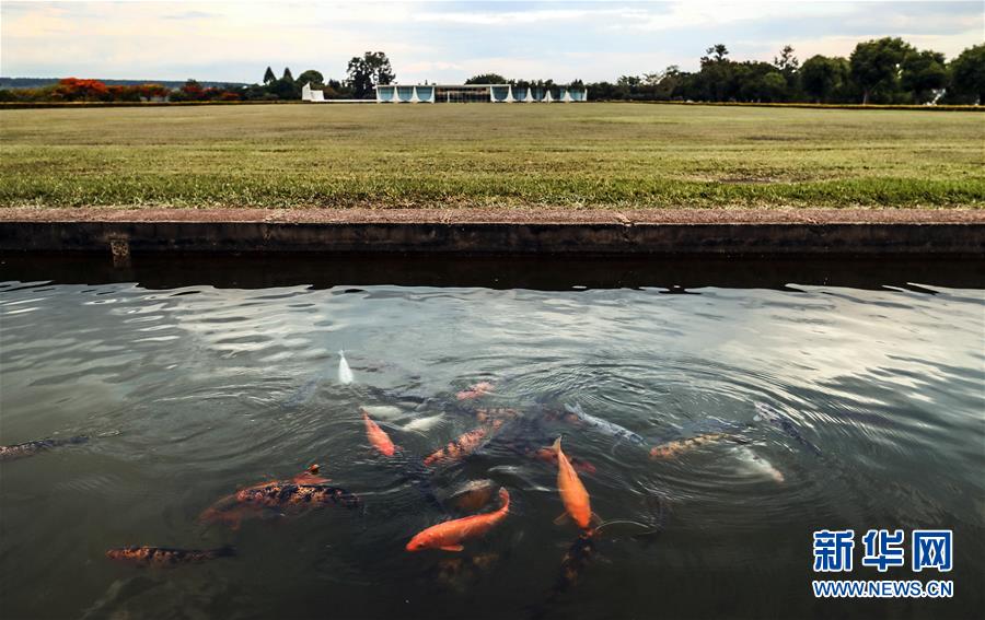 這是11月2日拍攝的位于巴西首都巴西利亞的總統(tǒng)府水池中的中國(guó)錦鯉。新華社記者 蘭紅光 攝