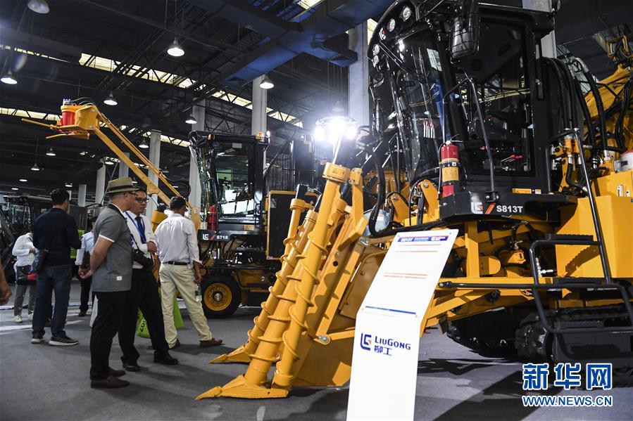 11月16日,參觀者在展會(huì)現(xiàn)場(chǎng)參觀甘蔗收割機(jī)械設(shè)備。新華社記者曹祎銘攝
