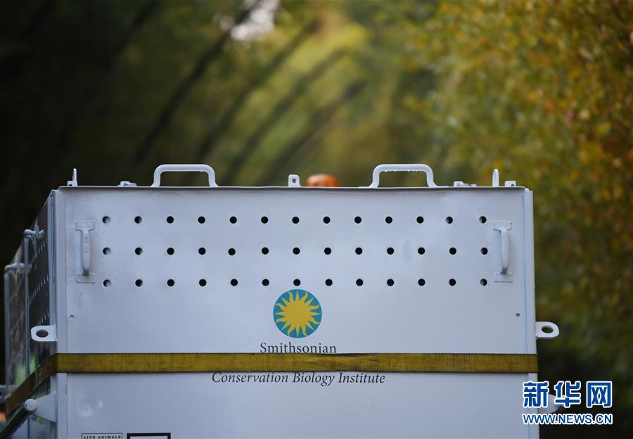 11月19日,在美國華盛頓的美國國家動物園,裝有大熊貓“貝貝”的箱子被運(yùn)往卡車,準(zhǔn)備前往機(jī)場。  新華社記者 劉杰 攝