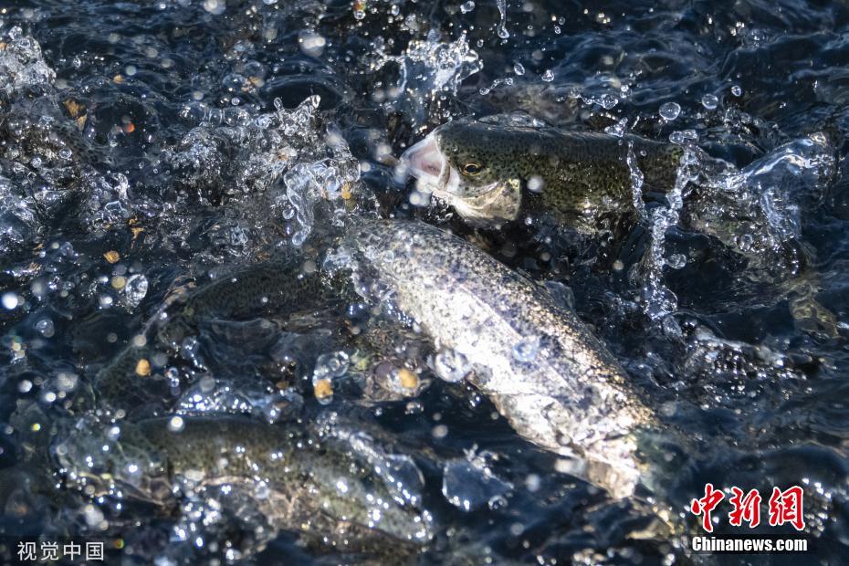當(dāng)?shù)貢r間2019年11月17日,美國加州薩克拉門托,實拍洄游產(chǎn)卵的鮭魚。圖片來源:視覺中國