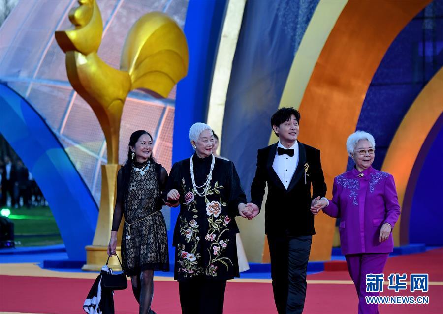 11月23日,田華(右一)、盧燕(左二)等在紅毯儀式上。當(dāng)日,第28屆中國金雞百花電影節(jié)紅毯儀式在福建廈門舉行。新華社記者張國俊攝