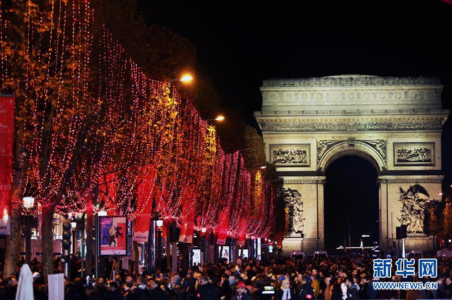 11月24日,在法國(guó)巴黎,人們?cè)谙汩葵惿岽蠼稚蠀⒓狱c(diǎn)燈儀式。當(dāng)日,法國(guó)巴黎香榭麗舍大街點(diǎn)亮彩燈迎圣誕。從即日起至1月8日,整條香榭麗舍大街都將被喜慶的節(jié)日燈飾點(diǎn)亮。新華社記者高靜攝