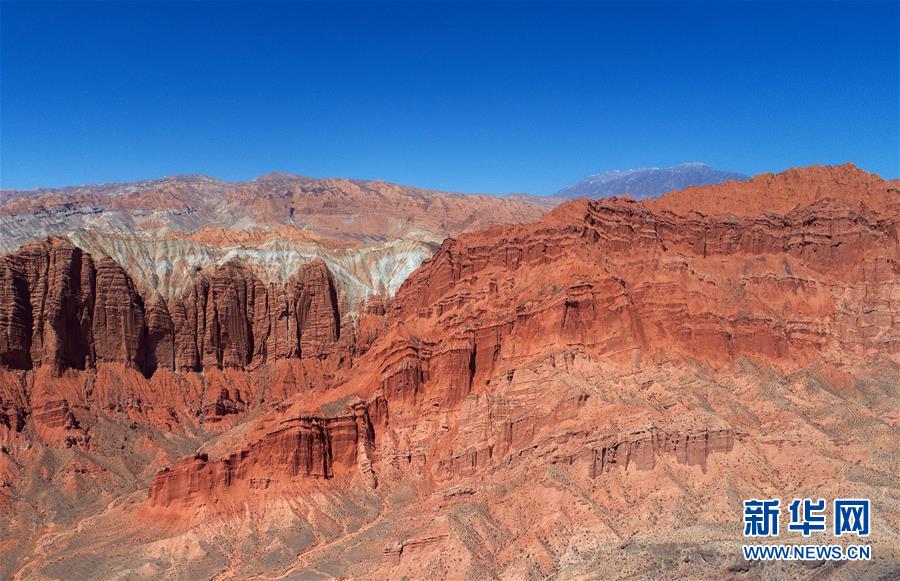 這是位于貴德縣尕讓鄉(xiāng)松巴村附近的丹霞地貌一角(4月16日無人機(jī)拍攝)。新華社記者張宏祥攝