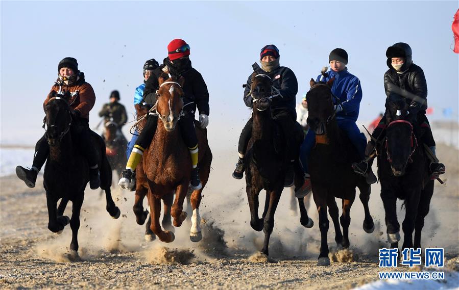 11月26日,在新疆福??h烏倫古湖海上魔鬼城景區(qū),小騎手們參加賽馬比賽。新華社記者沙達(dá)提攝