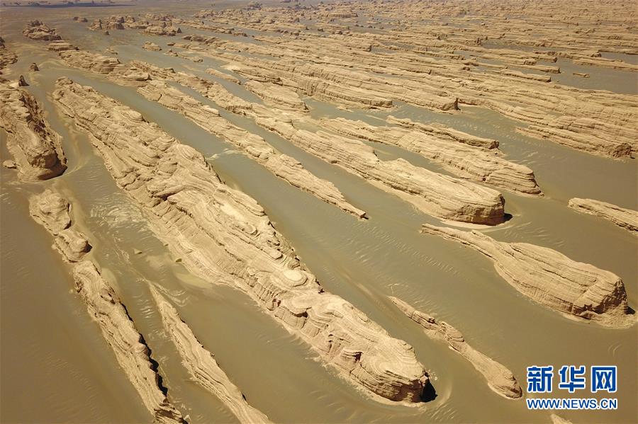 這是5月8日無人機(jī)拍攝的敦煌雅丹國家地質(zhì)公園雨后景色。近日,甘肅敦煌迎來降雨天氣,雨后的敦煌雅丹國家地質(zhì)公園顯得更加雄壯美麗。新華社記者范培珅攝