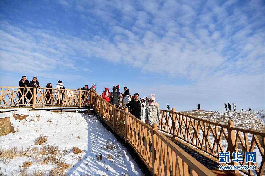 11月26日,來自全國百家旅行社的旅游業(yè)界人士在新疆福海縣烏倫古湖海上魔鬼城景區(qū)參觀。新華社記者沙達(dá)提攝