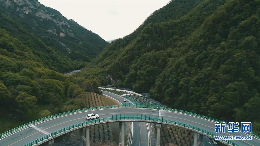 6月11日,一輛汽車在青海省扎隆溝至碾伯鎮(zhèn)公路上行駛(無人機(jī)拍攝)。新華社記者張宏祥攝
