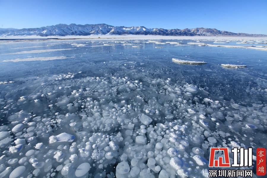 地處漠河市觀音山景區(qū)的蓮花湖湖面已經(jīng)完全封凍,冰層最厚的地方已經(jīng)超過60厘米,透過晶瑩剔透的冰面可以看到一串串潔白的氣泡分布在冰層之中,形成一組組惟妙惟肖的“冰泡”奇觀。
