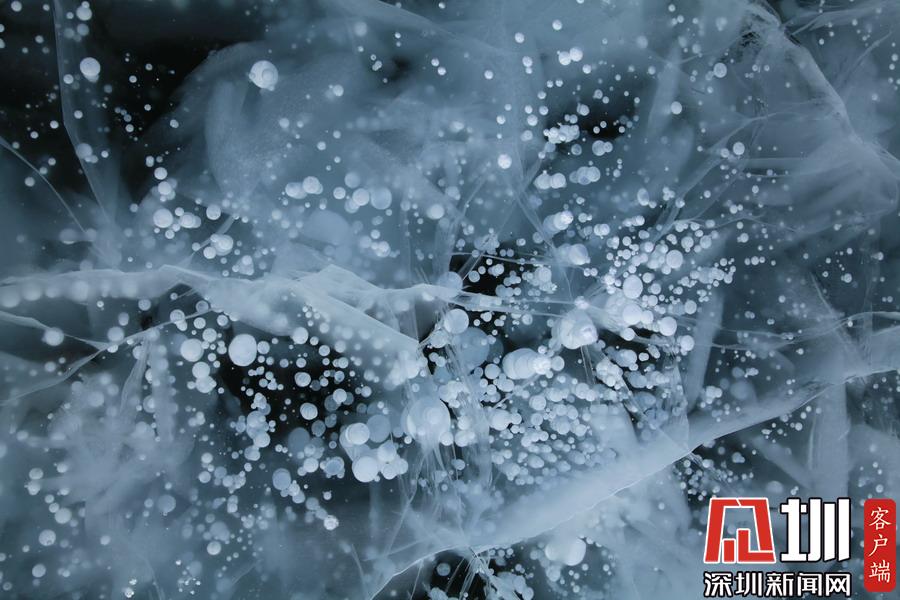 新疆賽里木湖冬季“冰泡”奇觀。