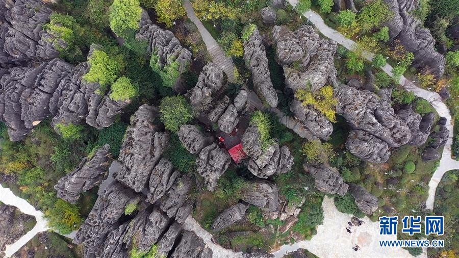 這是云南石林彝族自治縣黑石箐石林景觀(11月28日無人機(jī)拍攝)。初冬時節(jié),云南省石林彝族自治縣黑石箐景區(qū)內(nèi)一千多種中藥材生長在婀娜多姿的原始石林間,形成獨特的景觀,吸引眾多游人前來觀賞。新華社記者胡超攝