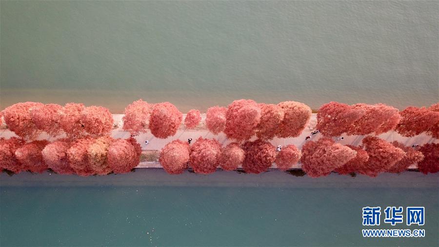 12月10日,游客在湖南烈士公園年嘉湖的游道上行走(無(wú)人機(jī)拍攝)。