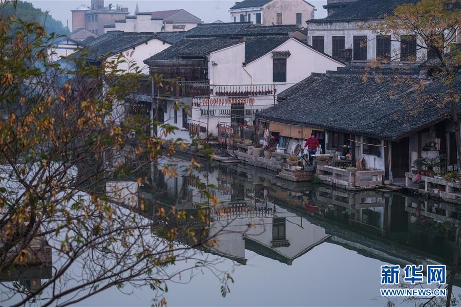 12月12日拍攝的晨曦中的安昌古鎮(zhèn)。新華社記者徐昱攝