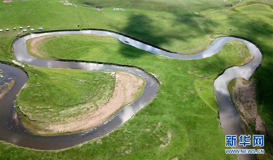 8月25日無(wú)人機(jī)拍攝的內(nèi)蒙古呼倫貝爾市陳巴爾虎旗境內(nèi)的莫日格勒河局部。新華社記者陳建力攝