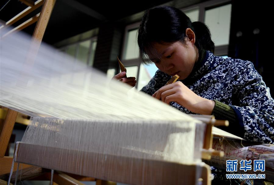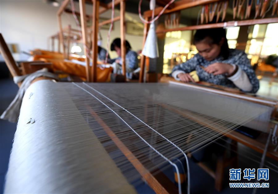 12月14日,在河北定州緙絲傳習(xí)基地,工作人員在制作緙絲。  新華社記者 王曉 攝
