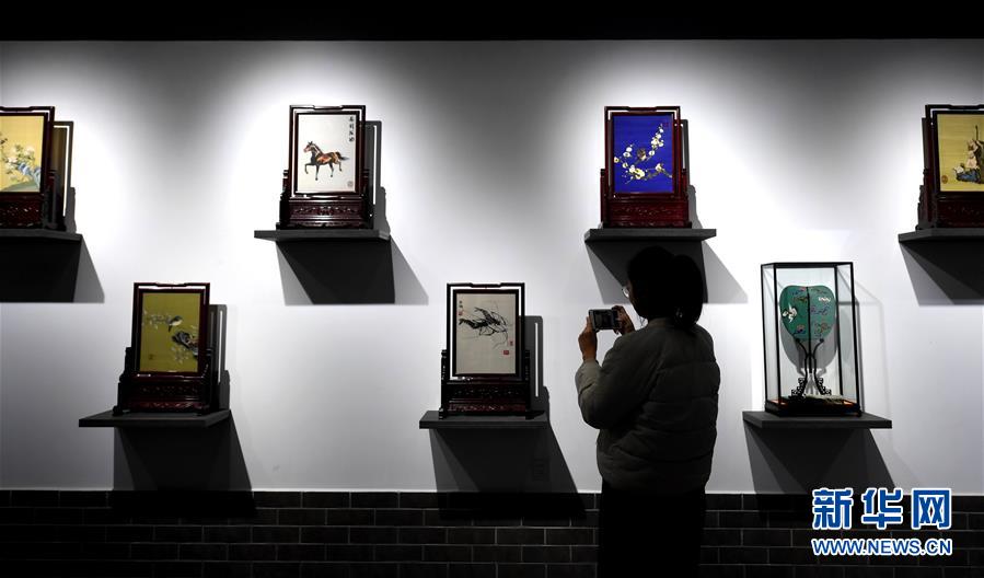 12月14日,游客在河北定州緙絲傳習(xí)基地參觀緙絲作品。  新華社記者 王曉 攝