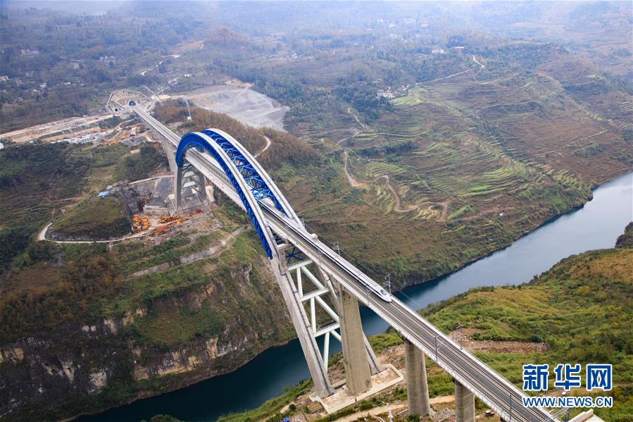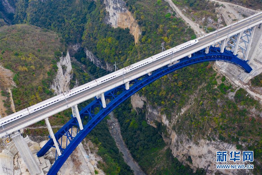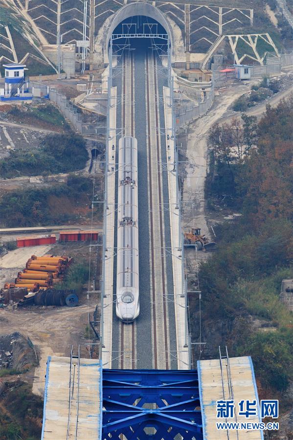 12月2日,一輛試驗列車駛過成貴高鐵鴨池河特大橋。當日,正在進行聯(lián)調(diào)聯(lián)試的成貴高鐵進入全線拉通空載模擬運行階段,試驗列車將在成都到貴陽區(qū)間內(nèi)全線路運行。線路全長650公里的成貴高鐵是我國“八縱八橫”高速鐵路網(wǎng)的重要組成部分,設(shè)計時速為250公里。新華社記者劉續(xù)攝