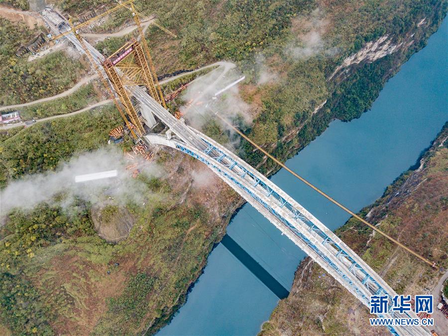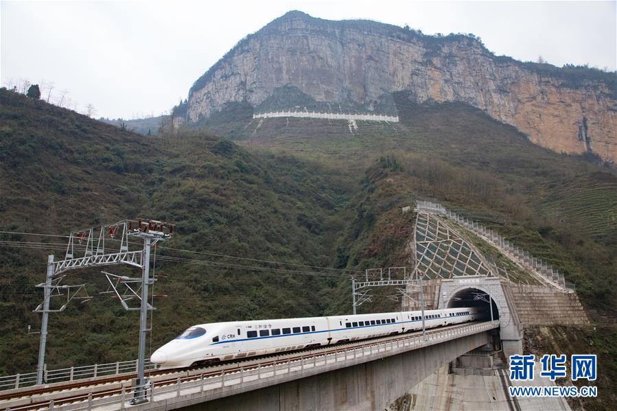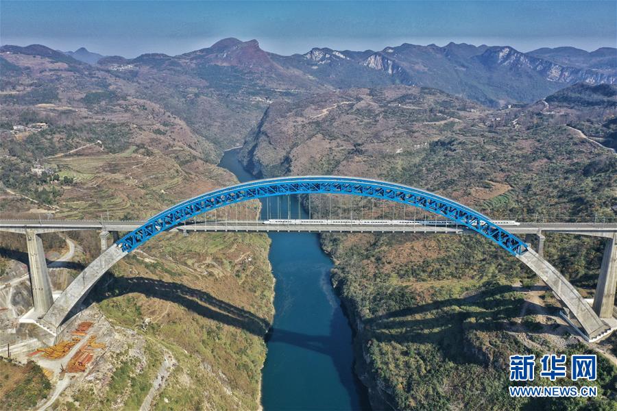 12月16日,一列動車組列車從成貴高鐵西溪河大橋上駛過。新華社記者楊文斌攝