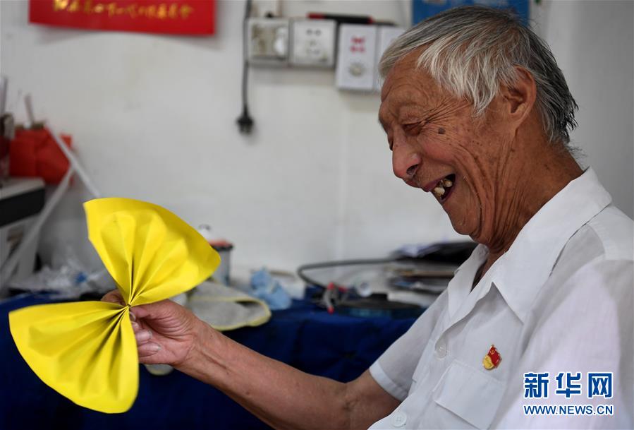 7月31日,葉連平在“留守未成年人之家”教室里欣賞學(xué)生剛剛送給自己的折紙禮物。92歲的退休教師葉連平生活在安徽省和縣烏江鎮(zhèn)卜陳村,村里的年輕人大多外出工作,留下的多是老人和孩子,家長普遍沒有能力輔導(dǎo)孩子學(xué)習(xí)。2000年,原本是老師的葉連平?jīng)Q定創(chuàng)辦“留守未成年人之家”,為孩子們免費補習(xí)英語。19年來,葉連平幫助過的孩子超過1000名。新華社記者劉軍喜攝