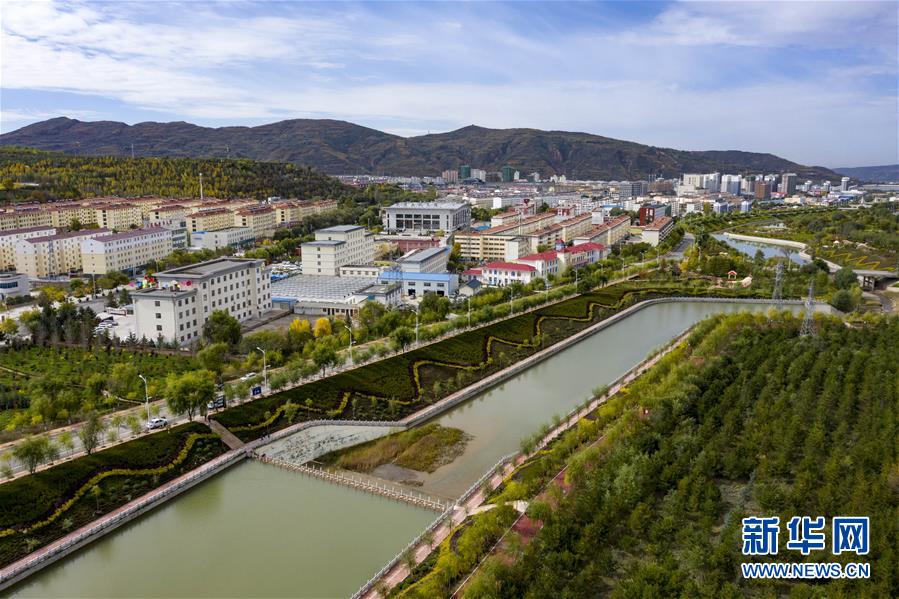 寧夏固原市隆德縣境內(nèi)的渝河兩岸健身步道、綠化景觀等設(shè)施完善,成為居民休閑娛樂的好去處(10月11日無人機拍攝)。  新華社記者 馮開華 攝