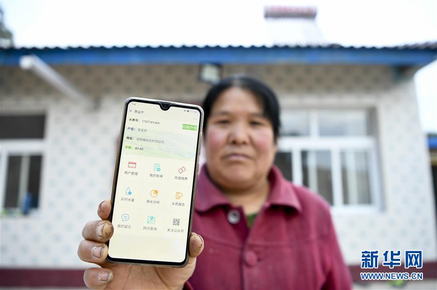 在寧夏固原市彭陽縣白陽鎮(zhèn)白岔村,村民展示可以“手機買水”的界面(10月11日攝)。  新華社記者 馮開華 攝