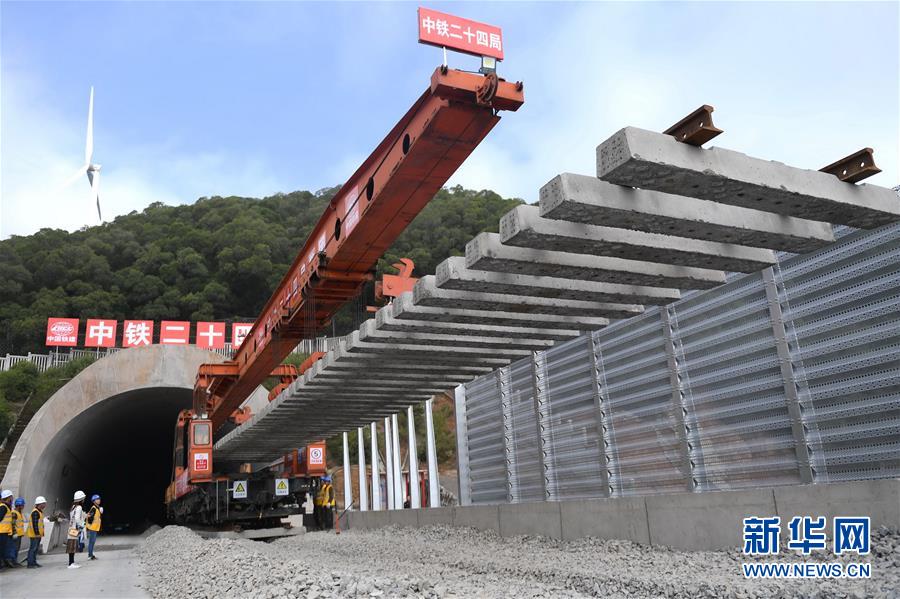 12月22日,中鐵二十四局工作人員在平潭海峽公鐵大橋鋪軌施工現(xiàn)場進(jìn)行鋪軌作業(yè)。當(dāng)日,總長為16.34公里的福平鐵路平潭海峽公鐵大橋鋪軌正式啟動。平潭海峽公鐵大橋是福州至平潭鐵路控制性工程,上層設(shè)計(jì)為時(shí)速100公里的六車道高速公路,下層為設(shè)計(jì)時(shí)速200公里的高鐵,大橋計(jì)劃2020年正式通車。新華社記者林善傳攝
