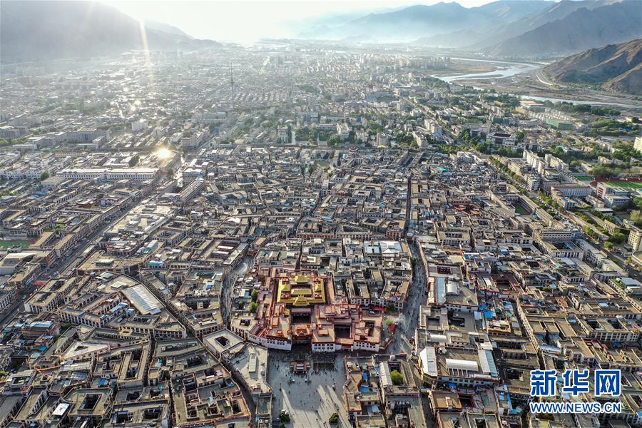 鳥(niǎo)瞰拉薩古城(8月10日無(wú)人機(jī)拍攝)。新華社記者普布扎西攝