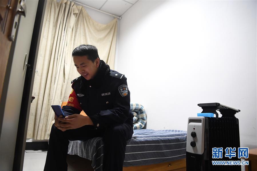 12月18日,常曉龍在駐地宿舍與妻子視頻交流。新華社記者劉軍喜攝