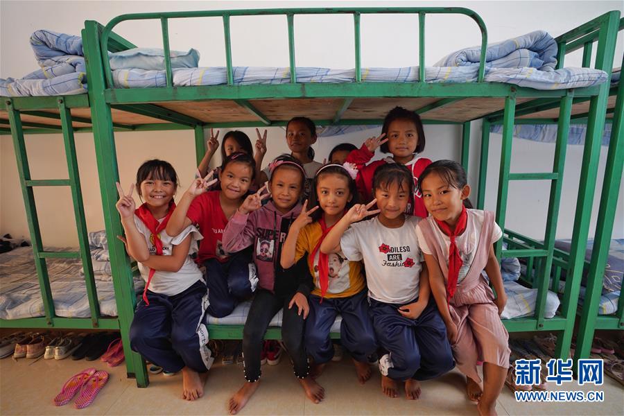 大興地鎮(zhèn)維拉壩“珠海小區(qū)”小學(xué)一年級(jí)學(xué)生在宿舍合影(6月24日攝)。新華社記者秦晴攝