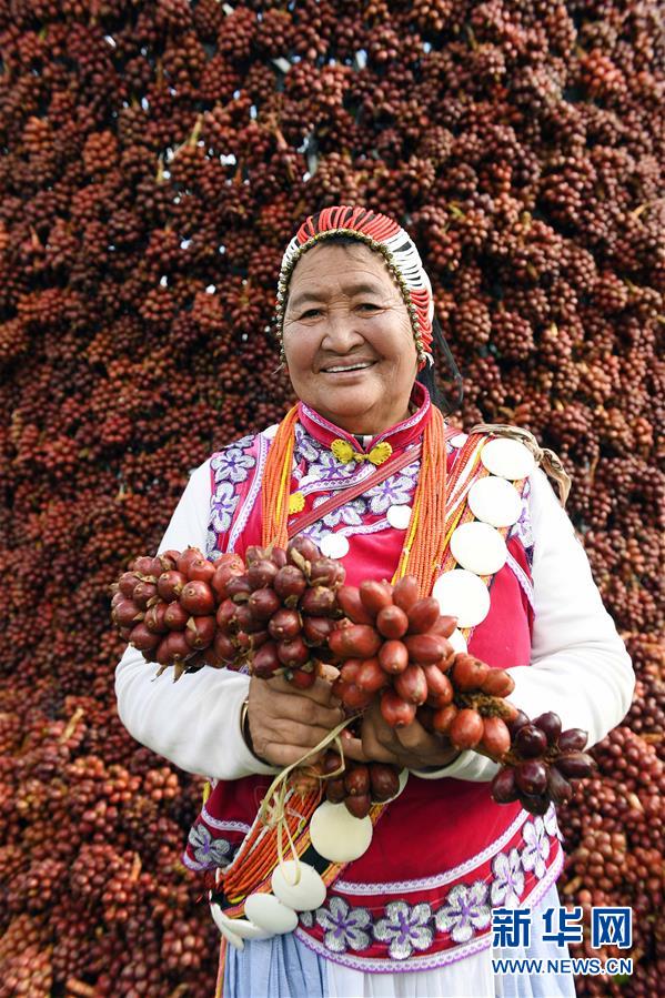 11月2日,云南福貢縣鹿馬登鄉(xiāng)干布村的傈僳族老人妮四菊站在豐收的草果前。新華社記者楊宗友攝