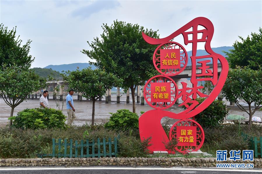 8月22日,福安市溪邳村村民從該村的宣傳欄前走過。新華社記者林善傳攝