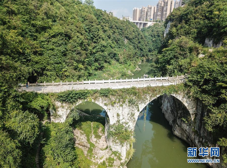 始建于清光緒年間的貴州省福泉市和善橋(8月21日無人機拍攝)。僅福泉市,修建于明清時期保存至今的石橋就有130座。新華社記者陶亮攝