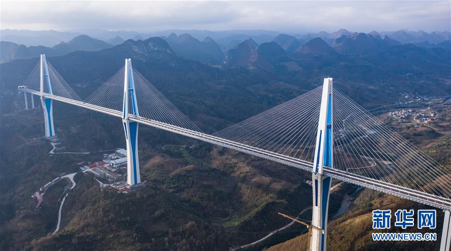 當日,332米高的全球最高混凝土橋塔——貴州平塘至羅甸高速公路控制性工程平塘特大橋成功合龍。記者從貴州省交通運輸廳了解到,平塘特大橋全長2135米,橋面寬30.2米,規(guī)劃雙向4車道,是一座三塔雙索面疊合梁斜拉橋。三座橋塔的高度分別為320米、332米和298米,相當于在峽谷之中建了三座100多層高的大樓。平塘特大橋于2016年4月開工建設,2018年11月橋塔順利封頂,計劃總工期為42個月,總投資15億元。此次合龍后,還要進行橋面施工和欄桿等工程建設,預計今年底全橋通車,屆時平塘到羅甸的通行時間將從2個半小時縮短至1小時,將成為連接貴州南部的交通要道,對助推滇黔桂石漠化片區(qū)脫貧攻堅具有重要意義。