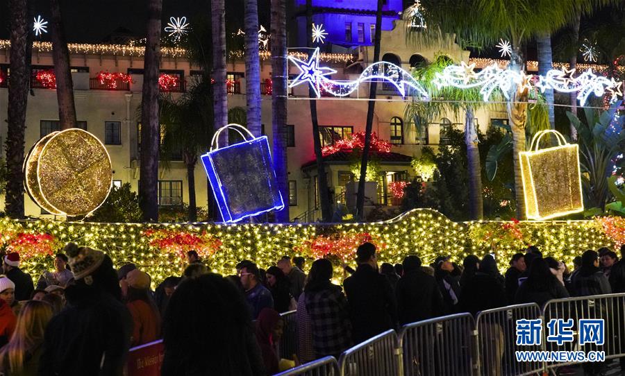 12月29日,人們?cè)诿绹?guó)加利福尼亞州里弗賽德燈光節(jié)上欣賞彩燈。 新華社記者李穎攝