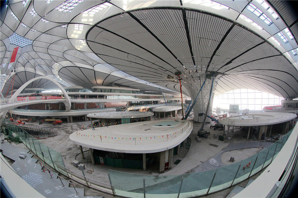 2019年1月20日,北京,探訪北京大興國際機(jī)場航站樓,建設(shè)工地正在如火如荼地有條不紊地建設(shè)之中。丁幫學(xué)/千龍圖像/視覺中國
