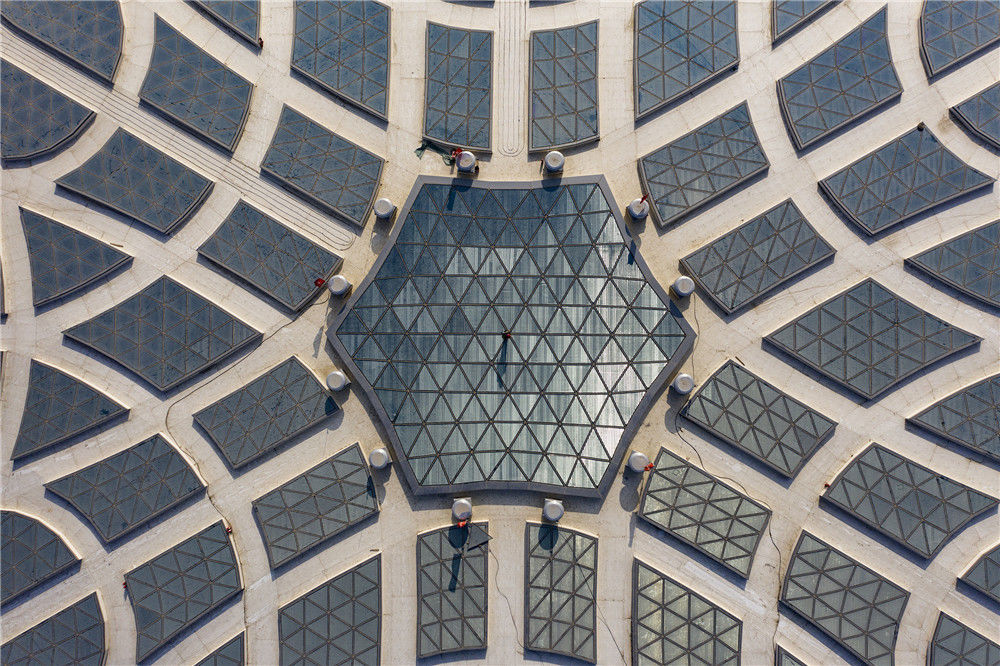 2019年1月13日,北京大興機場航站樓頂部最中央,一個工人正在進行驗收工作。陳國亨/視覺中國