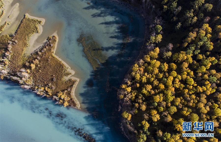 9月25日無人機拍攝的喀納斯景區(qū)風光。新華社記者王菲攝