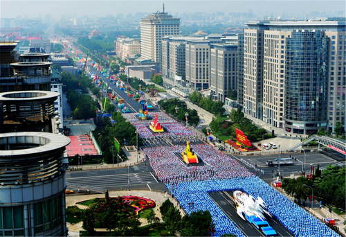 2019年10月1日,慶祝中華人民共和國成立70周年大會(huì)在北京天安門廣場隆重舉行。這是行進(jìn)中的群眾游行方陣。新華社記者魏培全攝