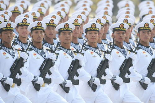 2019年10月1日,慶祝中華人民共和國成立70周年大會(huì)在北京天安門廣場隆重舉行。這是海軍方隊(duì)接受檢閱。新華社記者劉大偉攝
