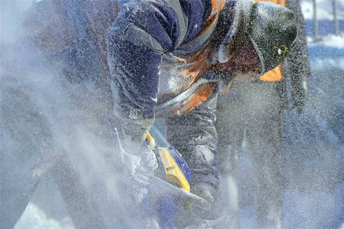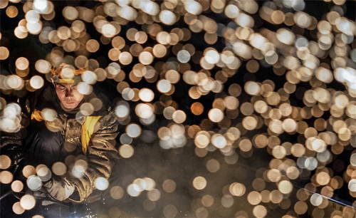 2019年1月15日凌晨,中鐵十一局施工人員在陜西省西安火車站改擴(kuò)建工程現(xiàn)場切割鋼軌。新華社記者陶明攝