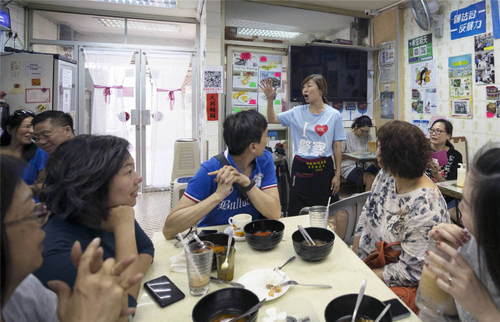 2019年10月10日,食客在李凱瑚位于香港九龍的茶餐廳里聚集,為她加油。51歲的李凱瑚是土生土長的香港人,她多次參加撐警集會(huì),并在社交媒體上表態(tài)支持警察。遭到騷擾和恐嚇 但李凱瑚繼續(xù)勇敢支持警察,向市民發(fā)出號召,反對暴力。一些香港市民、內(nèi)地游客專程來到李凱瑚的茶餐廳,為她加油打氣,表達(dá)對香港的美好祝愿。新華社記者盧燁攝