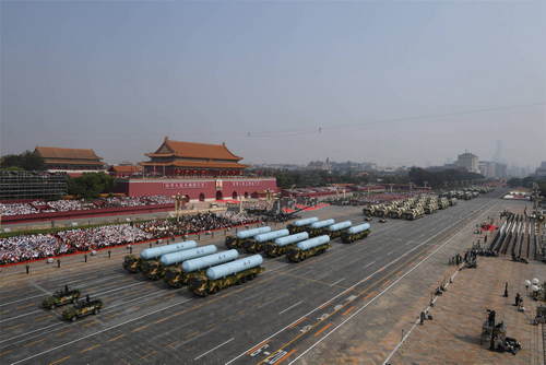 2019年10月1日,慶祝中華人民共和國成立70周年大會(huì)在北京天安門廣場隆重舉行。這是巨浪-2導(dǎo)彈方隊(duì)和東風(fēng)-31甲改核導(dǎo)彈方隊(duì)接受檢閱。新華社記者翟健嵐攝